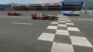 The two leaders Remco Majoor (CodeLyoko1) and Martin Kapal (Flame CZE) crossing the finish line in the final lap of the race. The race ended under a full-course caution after an incident.